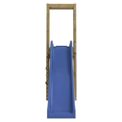 Durable material: This climbing frame with slide is made of Solid treated natural wood. Solid pine wood is a beautiful natural material. Pine wood has a straight grain, and the knots give the material its signature, rustic look. Impregnation is a preservation process that is carried out by using autoclaves. The pressure-treatment increases resistance to decay and weather.